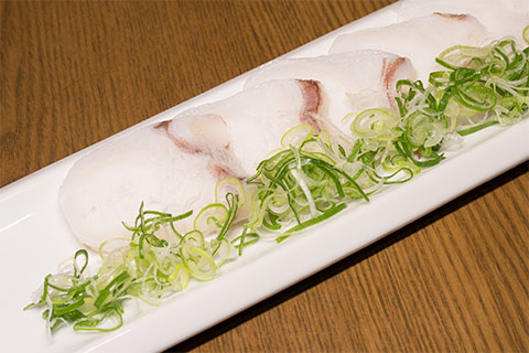 前浜で獲れた真ダコ足(生冷)を使用。さっと炙って特製の塩ダレでどうぞ。