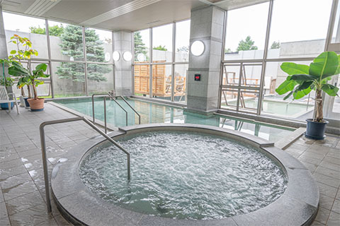 天然温泉の日帰り入浴施設がある道の駅。大きな窓が開放的な浴場は、ヒノキ壁の和風と石材壁の洋風が男女日替わりになっており、雰囲気の異なる浴槽を堪能できます。