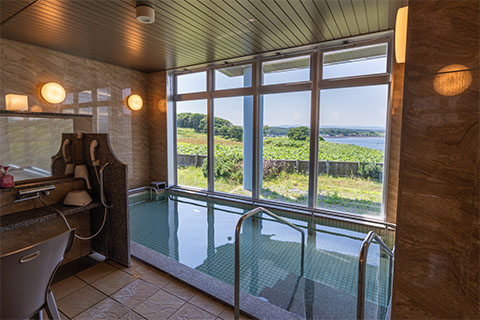 大浴場はガラス張りになっているため、オホーツク海を一望することができます。